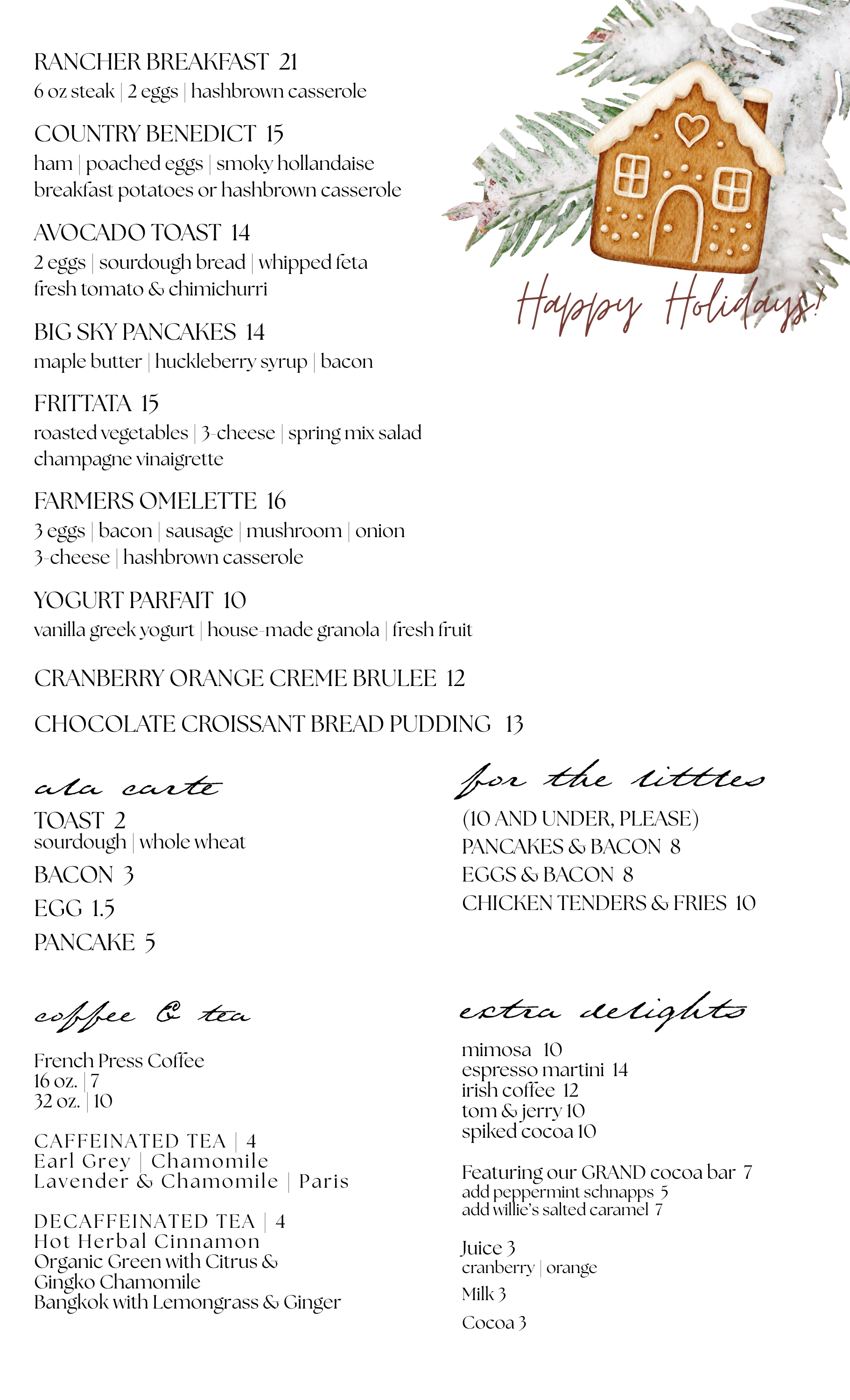 Come have a very special brunch with us and Santa! Brunch will be served 10 am to 2 pm. Seats will fill up fast!